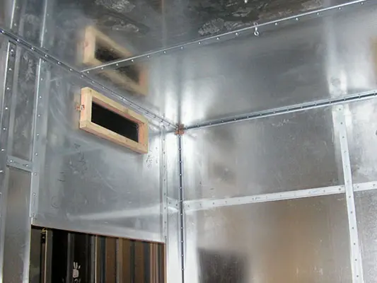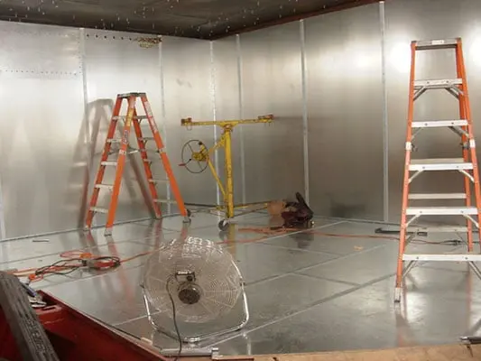 - Panneaux en acier isolés des murs. Espace vide de 5cm des murs.