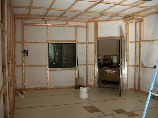 - Tasseaux de bois à l’intérieur de la cage pour les finitions intérieures.